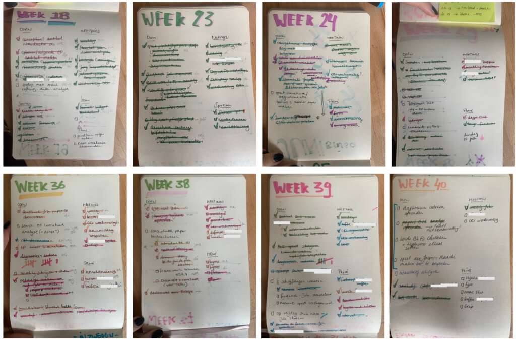 Begin daarom vanaf dag 1 een dagboek. Schrijf op wat er gebeurt, hou je agenda goed bij zodat je momenten in de tijd goed terug kunt vinden. Alles wat gebeurt is ✨data✨ en je bent later blij als je dat goed vastlegt. Schrijf geen lappen tekst, hou het kort en bondig. Neem gesprekken op, vraag om toestemming. Juist ook groepsgesprekken, die zijn vaak heel interessant.